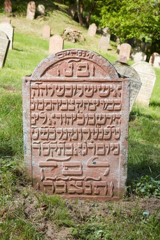 Z. 6: Der Zuname ט"פ, T“P, ist eine Abkürzung des in Ingenheim recht häufigen Familiennamens Dreifuß/Dreyfuß (טרייפוס). Der Buchstabe פ pe in נפטר („verstorben“) klein über dem Wort. „Mit gutem Namen“, vgl. bBer 17a und Av 4,13.