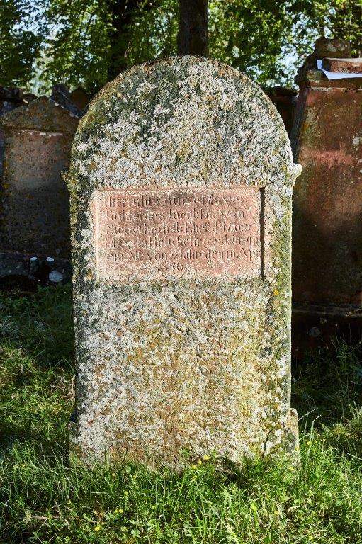 Hier ruht Louise Mayer Tochter des Jacob May: in Niederhochst: Ehef: d: Mos: May: in Heuchelh: gest: in ein nem Alt: von 22 Jahr den 19 Apr: 1856