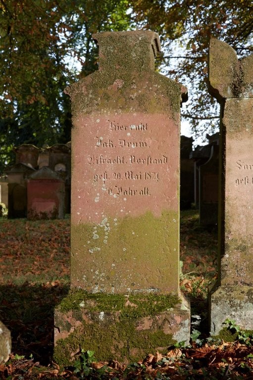 Jakob Drumm war 2. israelitischer Vorstand der Gemeinde in Ingenheim, gestorben am 20. Mai 1879 im Alter von 70 Jahren.