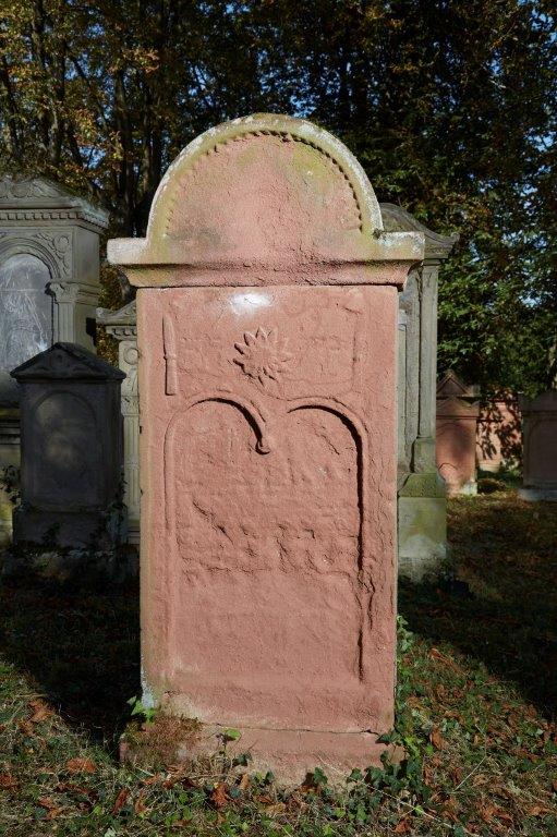 Zwei Messer und ein Stern befinden sich über dem hebräischen Textfeld.