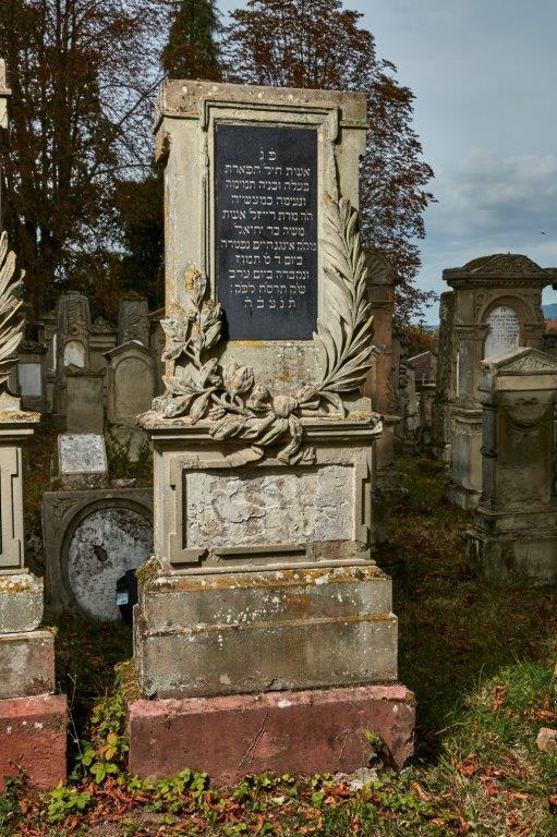 Die deutsche Inschrift im Sockel ist zerstört Es ist anzunehmen, auf Grund der gleichen Bauweise, dass hier Frau Rosalie geb. Fried, verheiratete Fischel, begraben liegt. Siehe Grab Nr. 3 13 08 Moses Fischel.