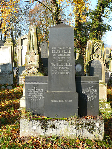 Obelisk mit Sockel und beidseitig angefügten Textplatten (hebräischer Text).