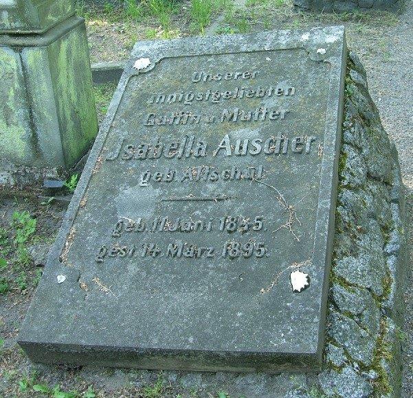 Isabella Altschuh, Tochter von Marcus Altschul und Esther Elise geb. Altschul, heiratete am 14. September 1864 in Lauterbourg / Elsass Benjamin Auscher. Isabella starb im Alter von 50 Jahren und wurde auf dem jüdischen Froedhof in Mannheim beerdigt. Grabnummer: C2-A-06-15.