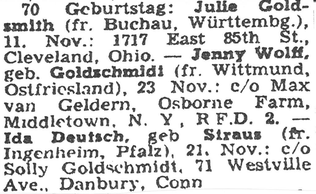 Ida war die Tochter von Emanuel Strauß und Johanna geb. Löb. Sie heiratete am 10. November 1897 Simon Deutsch. Gemeinsam hatten sie zwei Kinder. Simon und Ida emigrierten am 20. August 1941 von Lissabon aus mit der SS Mouzinho nach New York. Ankunft dort am 02. Septmber 1941. Simon starb 05. Oktober 1941, bestattet in Danbury, Connecticut, US.