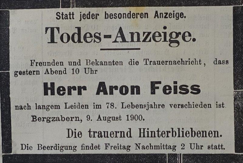 Sohn von: Feiß Aron d.A.