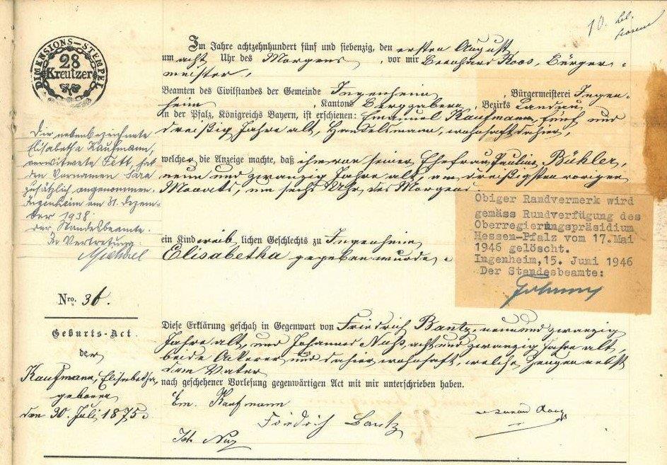 Eltern: Emanuel Kaufmann und Pauline Bühler. Geschwister: Ida (geb. 26. Dezember 1870, gest. 1871, wenige Wochen alt), Nathalie (geb. 09. Dezember 1871, gest. 23. August 1931), Johanna (geb. 14. März 1882, gest. 05. Januar 1942 in Göttingen), Emma (geb. 02. Dezember 1883, gest. 25. April 1955 in Göttingen). Verwitwet. Tochter: Grete Lucaks Fett.