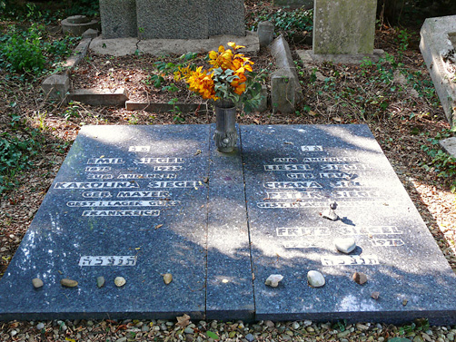Fritz Siegel verstarb am 10. Juni 1978 und ist bei seinem Vater Emil auf dem jüdischen Friedhof in Ingenheim unter großer Anteilnahme der Bevölkerung beigesetzt. Sein Grab 4 06 10 befindet sich im Feld 4, Reihe 6, Stein 10. Auf dem Grabstein wird weiterhin auch erinnernd gedacht: Der Mutter Karoline geb. Mayer, verstorben in Gurs und seiner Ehefrau Elisabeth und den beiden Kindern Chana und Pierre, die in Auschwitz ermordet wurden.